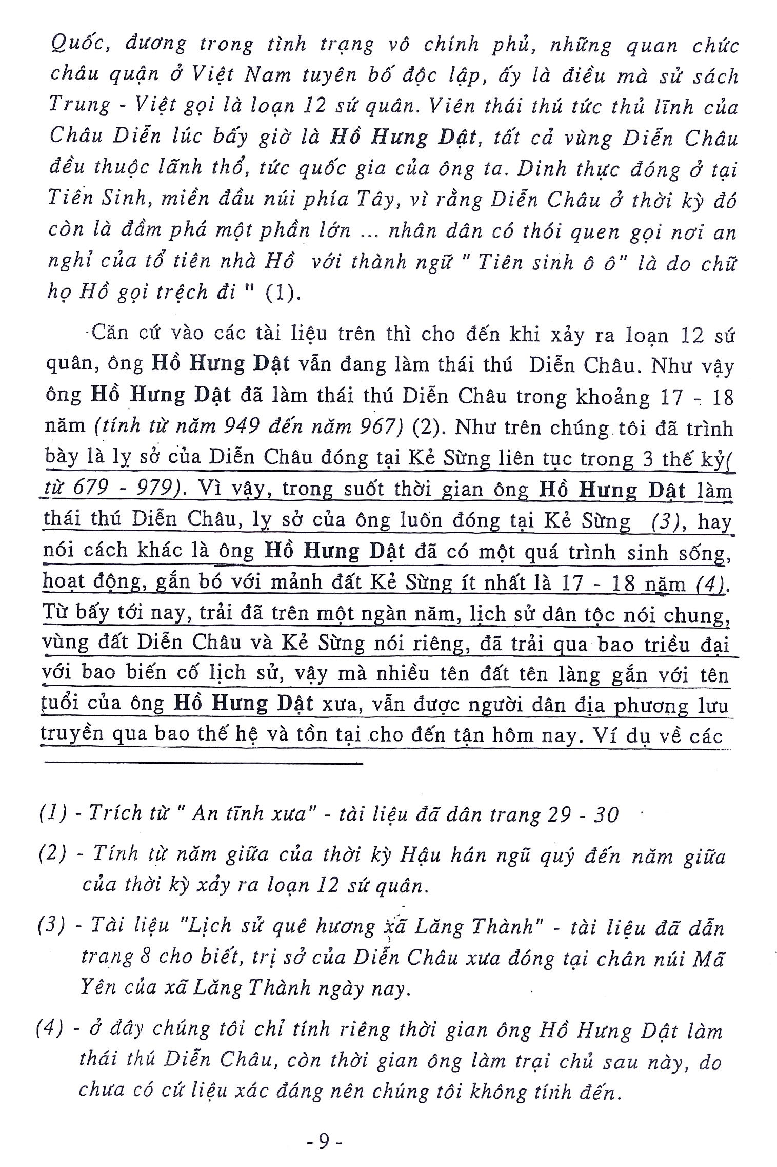Nhưng Chủ biên cuốn “Họ Hồ Việt Nam, cội nguồn và phát triễn”, chưa đi khảo sát thực địa lỵ sở Châu Diễn ở Quỳ Lăng xưa, chưa tìm hiểu nghiên cứu lịch sử địa phương và đọc kỹ “đoạn văn dẫn chứng”, đã nhầm tưởng Trị sở Châu Diễn là đóng ở Tiên Sinh Nghĩa Đàn. Là sai lầm lớn về sử phả dòng họ và lịch sử quốc gia.