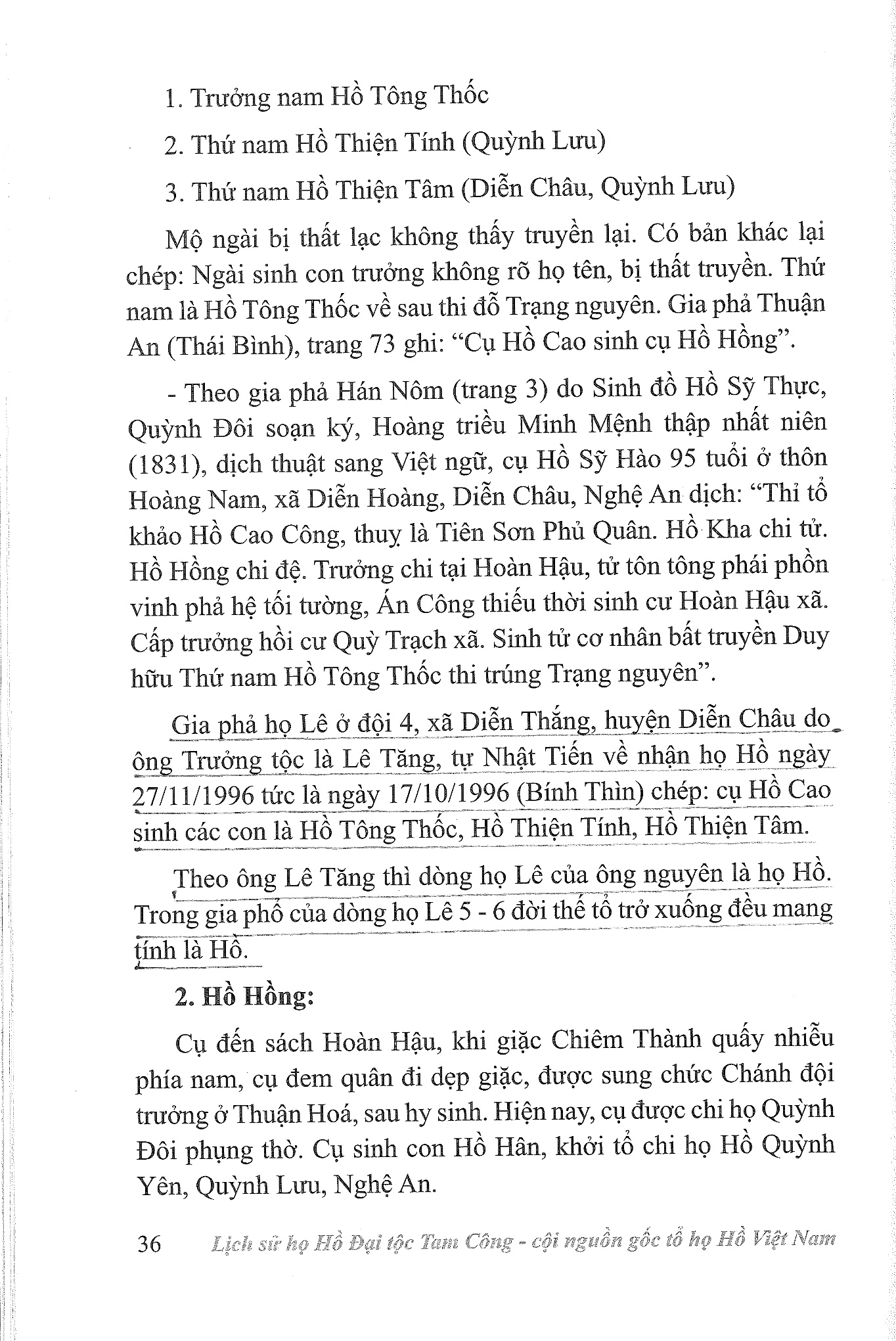 (a) “Hồ Cao sinh Hồ Hồng, ” (theo họ Hồ đại tộc Tam Công và họ Hồ Việt Thuận, Thái Bình …).